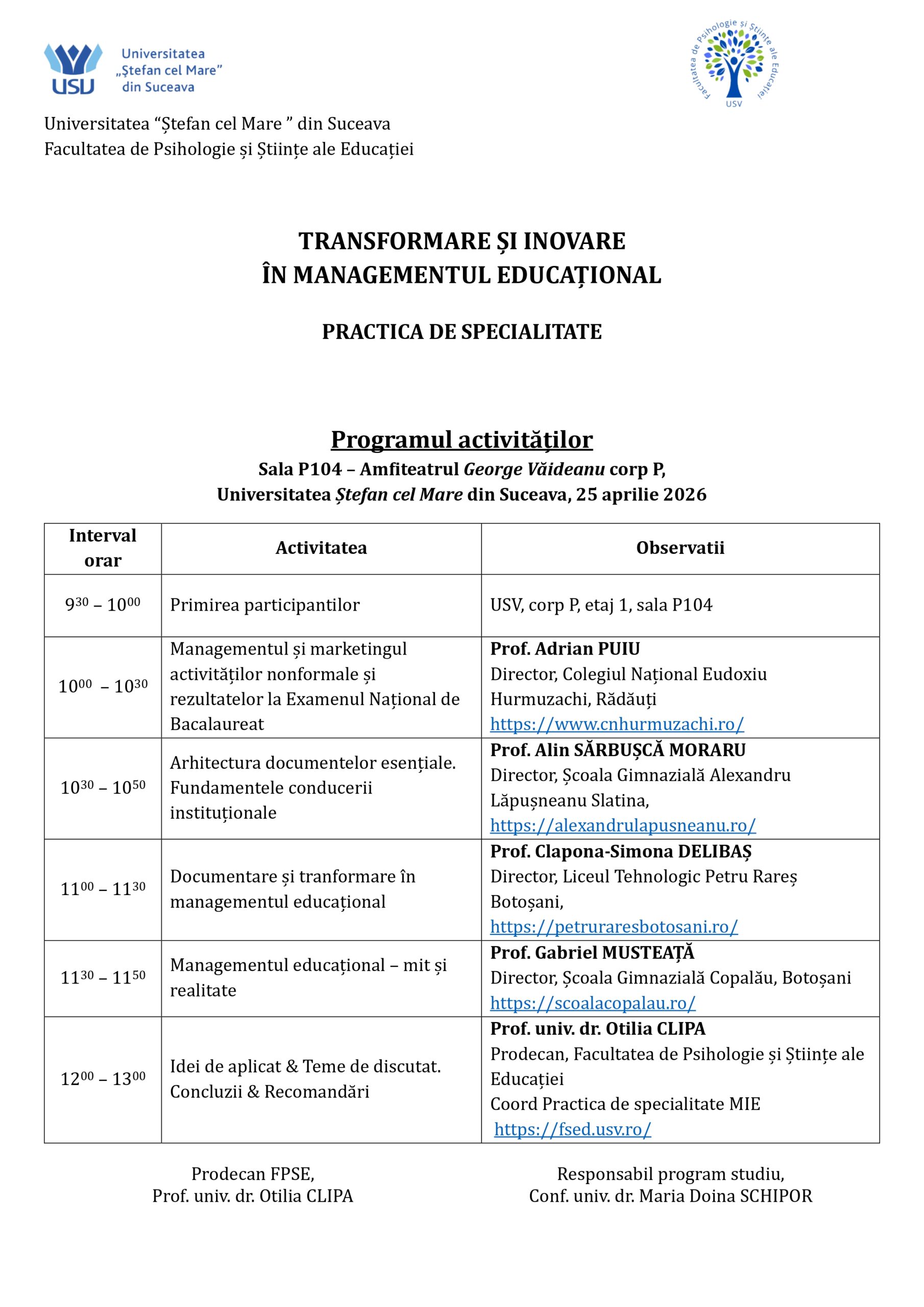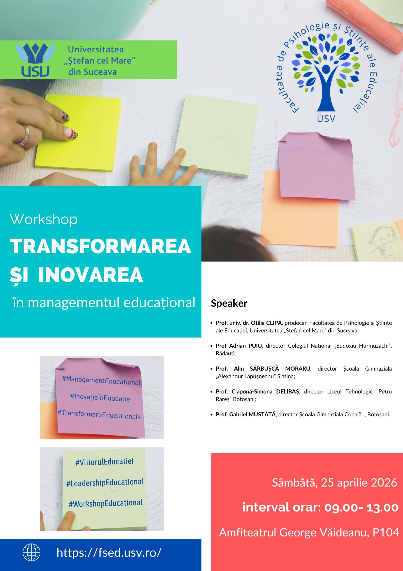 Prin aceste două evenimente, USV deschide un spațiu de colaborare între mediul universitar, școli și comunitate, în jurul unor teme esențiale pentru educația contemporană: incluziunea, inovarea și pregătirea profesorilor pentru școala viitorului.